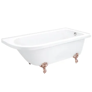 A stunning 1700mm long roll top showering bath with traditional rose gold feet, enjoy the feeling of luxury with this classical free standing shower bath. Designed to fit neatly into a corner, this bath is the ideal solution for families looking to add a little luxury, whilst keeping an eye on space.