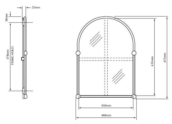 - Dimensions – (W)488 x (D)25 x (H)673mm
