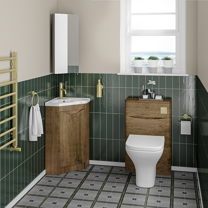 - Corner design for space-saving in smaller bathrooms or cloakrooms