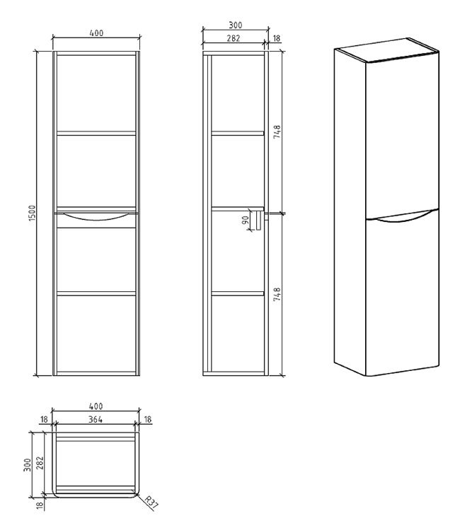 - Depth: 300mm