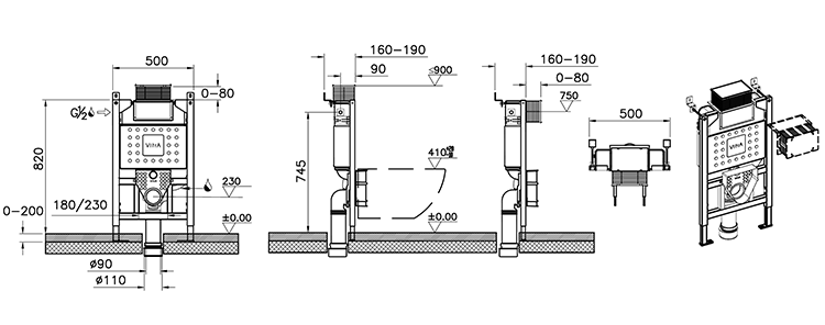 VitrA V-Fix Prime 820mm Frame for Wall Hung Toilets with Dual Flush Cistern