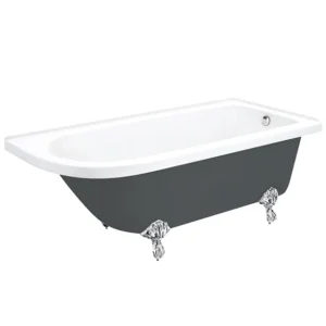 A stunning 1700mm long gloss grey roll top showering bath with traditional chrome feet, enjoy the feeling of luxury with this classical free standing shower bath. Designed to fit neatly into a corner, this bath is the ideal solution for families looking to add a little luxury, whilst keeping an eye on space.