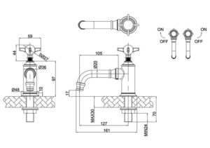 The Three Hole Wall Mounted Basin Mixer from Arcade has a traditional design which has been inspired by the 19th century Belle Époque deco era. Each piece of brassware has been beautifully crafted from the finest materials and finished in a special PVD nickel coating which gives a superior finish and guarantees durability.